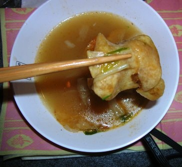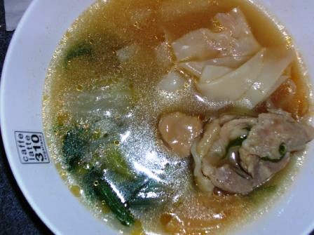 このへんで汁がなくなってきたので、ワンタンについていたタレも投入。