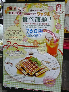 数ヶ月前からラケルの一部店舗でワッフル食べ放題をやっていたのだが、最近になってようやく気付いたので行ってきた。