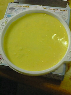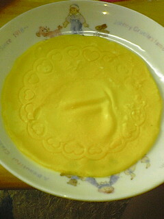 粉に卵と牛乳を混ぜ、それを型に薄く伸ばしてレンジでチンする。