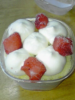 冷凍庫に入っているので、当然イチゴはカチカチだ。
