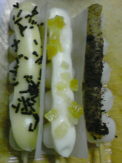 団子は思ったより粘り気があって柔らかく、串から外すことは困難である。