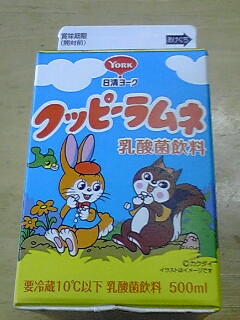 駄菓子「クッピーラムネ」を乳酸菌飲料にしたもの。