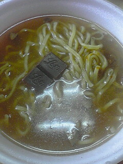 まず具と麺を器に入れて湯を注ぐ。