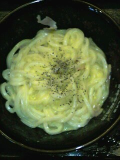 かまたまうどんにカルボナーラソースを和えたもの。