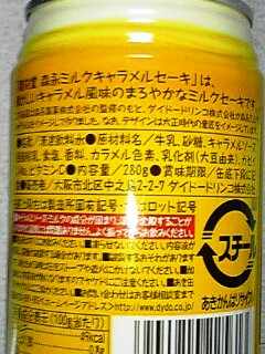 缶の説明によると、森永ミルクキャラメルをイメージした、キャラメル風味のミルクセーキだそうだ。