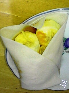 生地は思ったより(というか、本物の生春巻きの皮より)甘味があるので、バナナ巻きだとクレープ感覚で食べられる。