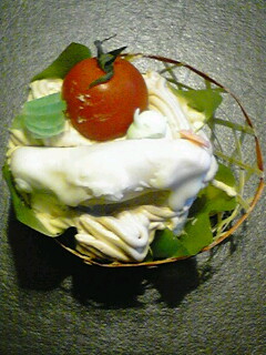 ワサビを模した緑色のクリームがちょこんと乗っている。