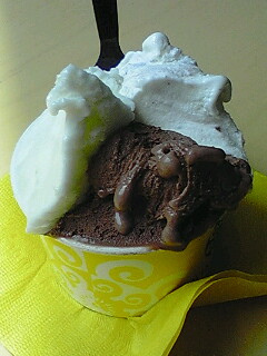 選んだ3種類はお目当てのテンタッツィオーネ(生姜と唐辛子入りチョコレート)と、青リンゴ、ロミオとジュリエット(クッキー入りミルクアイス)。